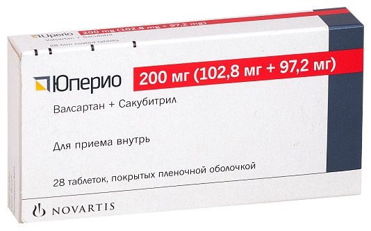 Время приема препарата Юперио не зависит от времени приема пищи. Целевая (максимальная суточная) доза препарата Юперио составляет 200 мг (102,8 мг + 97,2 мг) 2 раза в сутки. Рекомендуемая начальная доза препарата Юперио составляет 100 мг (51,4 мг + 48,6 мг) 2 раза в сутки. У пациентов, не получавших ранее терапию ингибиторами АПФ или АРА II, или получавших эти препараты в низких дозах, начинать терапию препаратом Юперио следует в дозе 50 мг (25,7 мг + 24,3 мг) 2 раза в сутки с медленным повышением дозы (удваивание суточной дозы 1 раз в 3-4 недели). В зависимости от переносимости дозу препарата Юперио следует увеличивать в два раза каждые 2-4 недели вплоть до достижения целевой (максимальной суточной) дозы 200 мг (102,8 мг + 97,2 мг) 2 раза в сутки. Применение препарата Юперио возможно не раньше чем через 36 часов после отмены ингибитора АПФ, так как в случае одновременного применения может возникнуть ангионевротический отек. Так как в состав препарата Юперио входит АРА II валсартан, его не следует применять одновременно с другим препаратом, в состав которого входит АРА II. Если у пациентов возникают проблемы с переносимостью препарата Юперио (клинически выраженное снижение АД, гиперкалиемия, нарушение функции почек), следует рассмотреть вопрос о временном снижении дозы или коррекции дозы сопутствующих лекарственных препаратов. Пациенты особых категорий Пациенты с нарушением функции почек У пациентов с нарушениями функции почек легкой (рСКФ 60-90 мл/мин/1,73 м2 площади поверхности тела) или умеренной степени тяжести (рСКФ 30-60 мл/мин/1,73 м2 площади поверхности тела) дозу препарата корректировать не требуется. Данных по применению препарата Юперио у пациентов с нарушениями функции почек тяжелой степени тяжести (рСКФ <30 мл/мин/1,73 м2 площади поверхности тела) недостаточно, поэтому при применении препарата Юперио у данной категории пациентов рекомендуется соблюдать осторожность. Пациенты с нарушением функции печени У пациентов с нарушениями функции печени легкой или умеренной степени тяжести (класс А и В по классификации Чайлд-Пью) дозу препарата Юперио корректировать не требуется. Препарат Юперио не рекомендуется применять у пациентов с тяжелыми нарушениями функции печени (класс С по классификации Чайлд-Пью). Применение у детей и подростков в возрасте до 18 лет Данных по безопасности и эффективности применения препарата Юперио у детей и подростков нет. Применение у пациентов старше 65 лет У пациентов старше 65 лет коррекция дозы не требуется.