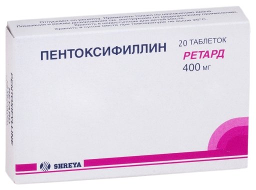 Действующее вещество: пентоксифиллин – 600 мг